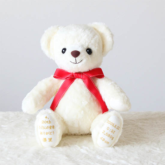 ギリギリまで悩みましたが、届いた時も綺麗な梱包で、開けてみるとイメージ通り可愛い顔のくまさんで、とても気に入りました(*^^*)当日サプライズ大成功。母が「これ欲しかったの!」とまさかの一言で、私も嬉しくなりました♪ 一生に一度の事だからこそ、安心安全な物を選びたい!!と思い、その上、国産だということでこちらに決めましたが、ホームページの詳しい説明や作って下さってる方々のお顔も見れたことで、すごく信頼感が持てたし、丁寧さも伝わってきたので、その期待を裏切らない仕上がりで満足しています(^^) これからお友達が結婚する時には、ぜひオススメしたいです。