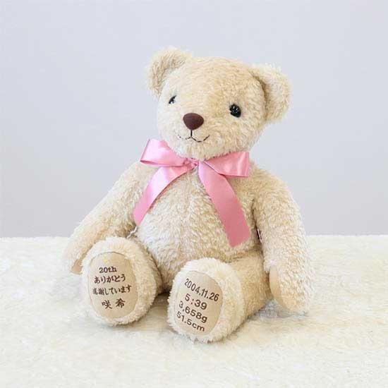 刺繍カラー4色から選択可能 ・ブルー ・ピンク ・ブラウン ・ゴールド 下記をご参考に刺繍内容のご入力をお願いします ●20th定型文・お名前+バースデータ 〇右足 定型文(下記よりお選びください) 1. 20th育ててくれてありがとう 2. 20thありがとう感謝しています 3. 20thいつもありがとう ずっと元気でいてね 4. 20thたくさんの愛情ありがとう 5. 20th今までありがとう これからもよろしくね ・ お名前(漢字/平仮名/筆記体) 〇左足 バースデータ ・生年月日(西暦表示) ・出生時間(24時間表示) ・出生体重(g表示) ・出生身長(小数点第一位まで) |